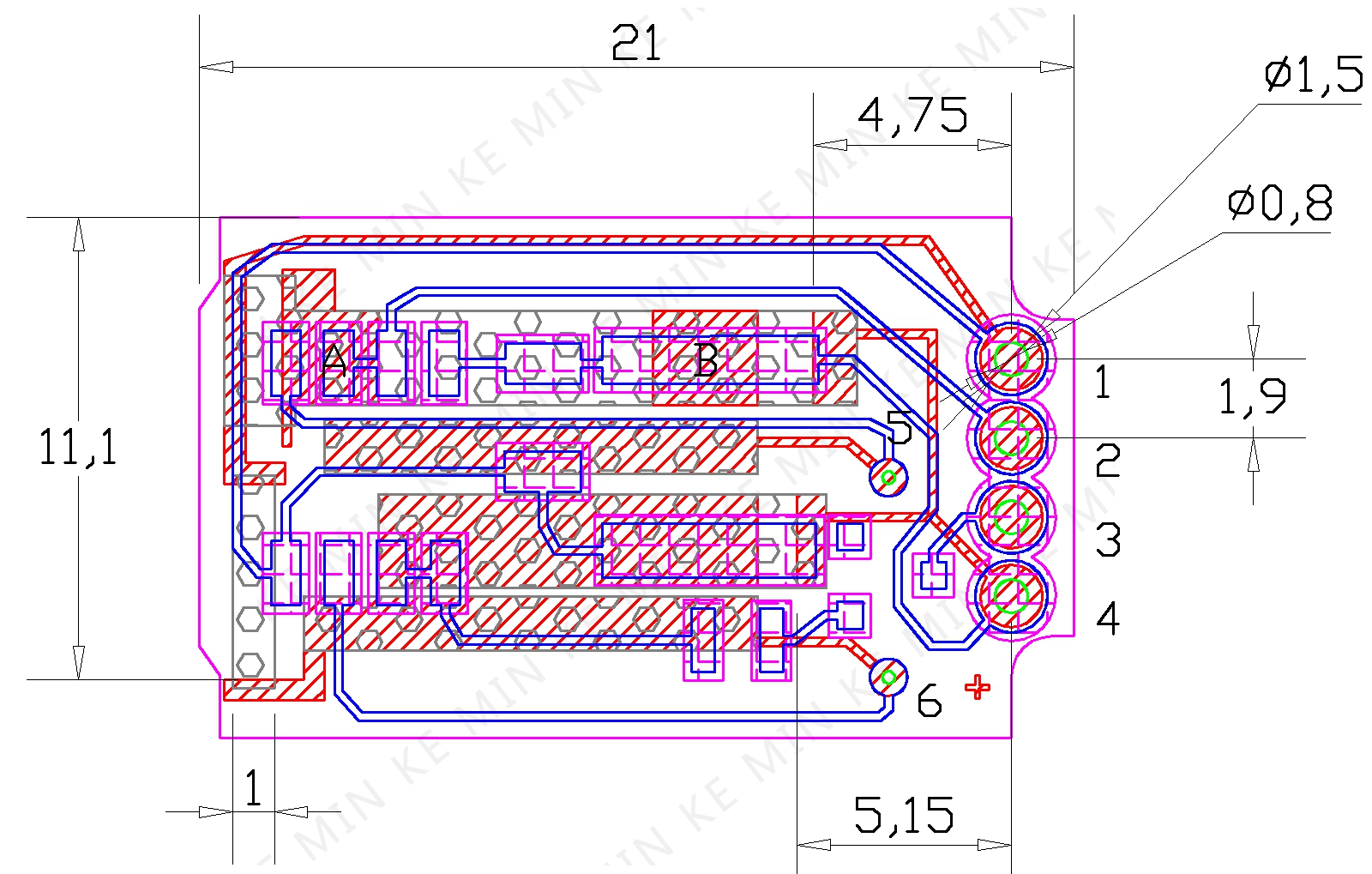 1.基板材料为FR-4 1MM±0.1 2.耐温135° 3.同心度≤0.1mm 4.46端阻值:22K±15% 5.46端接5v电压;4A:2.5v±0.1v 4B:0.5V±0.1v