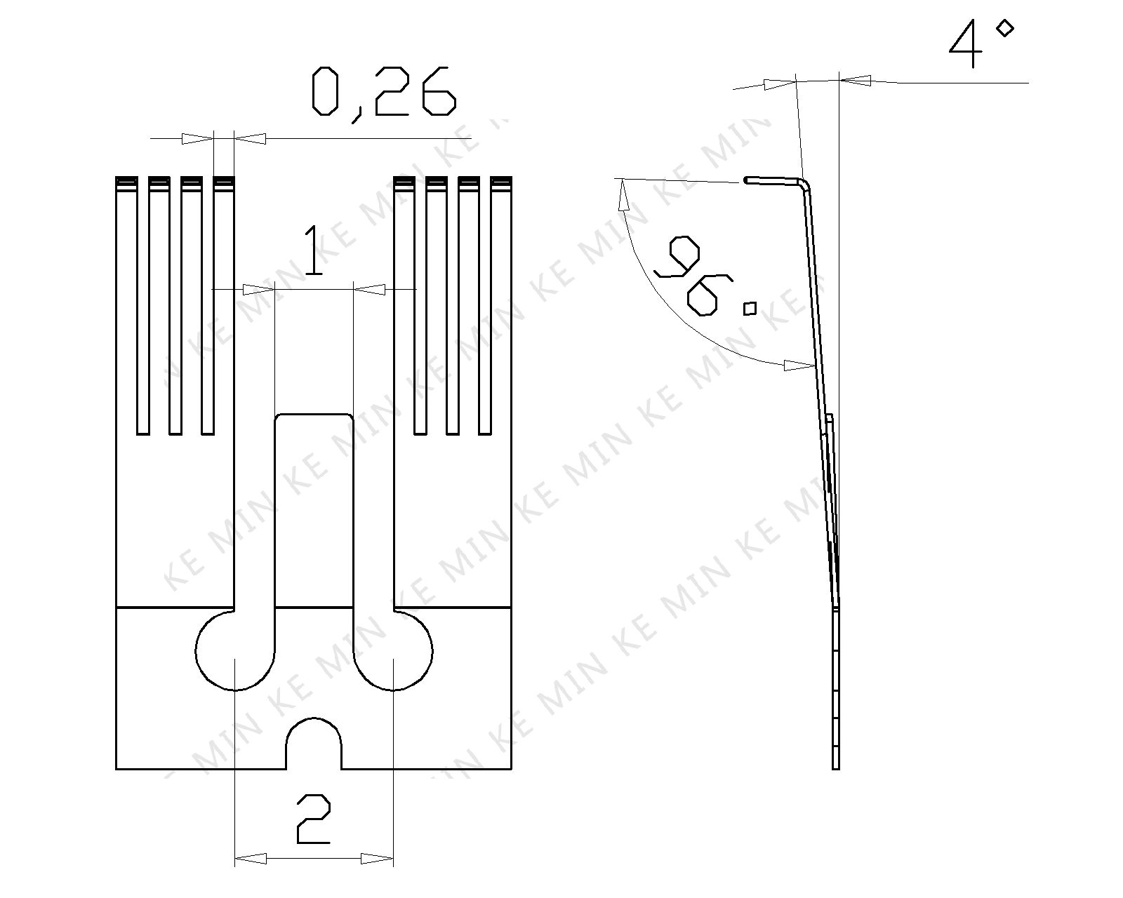 1.基础材料:QBE1/2 H 2.厚度 :0.08 MM 3.硬度 :HV 330±30 4.未注公差值:尺寸±0.05MM 5.同方向每根导线高度差异:0.05 MM. 6.工作压力 :40-60g 7.寿命:≥500万次