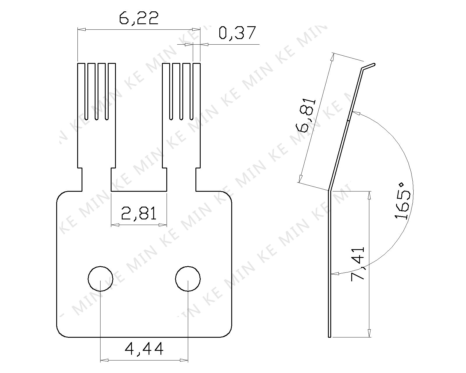 1.基础材料:三元合金1/2 H 2.厚度 :0.08 MM 3.硬度 :HV 330±30 4.同方向每根导线高度差异:0.05 MM 5.工作压力 :40-60g 6.所有未注公差为:±0.01 7.回弹性能:下压60°恢复率≥98%