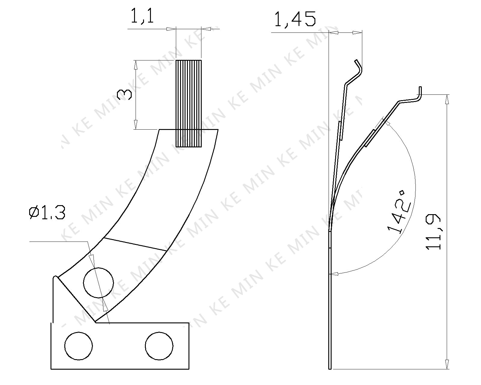 1.基础材料:QBE21/2 H 2.厚度 :0.1 MM 3.硬度 :HV 330±30 4. 焊接最小强度: 30 N 5.工作压力:30g 6.铍铜表面需做热处理 7.寿命;≥400万次