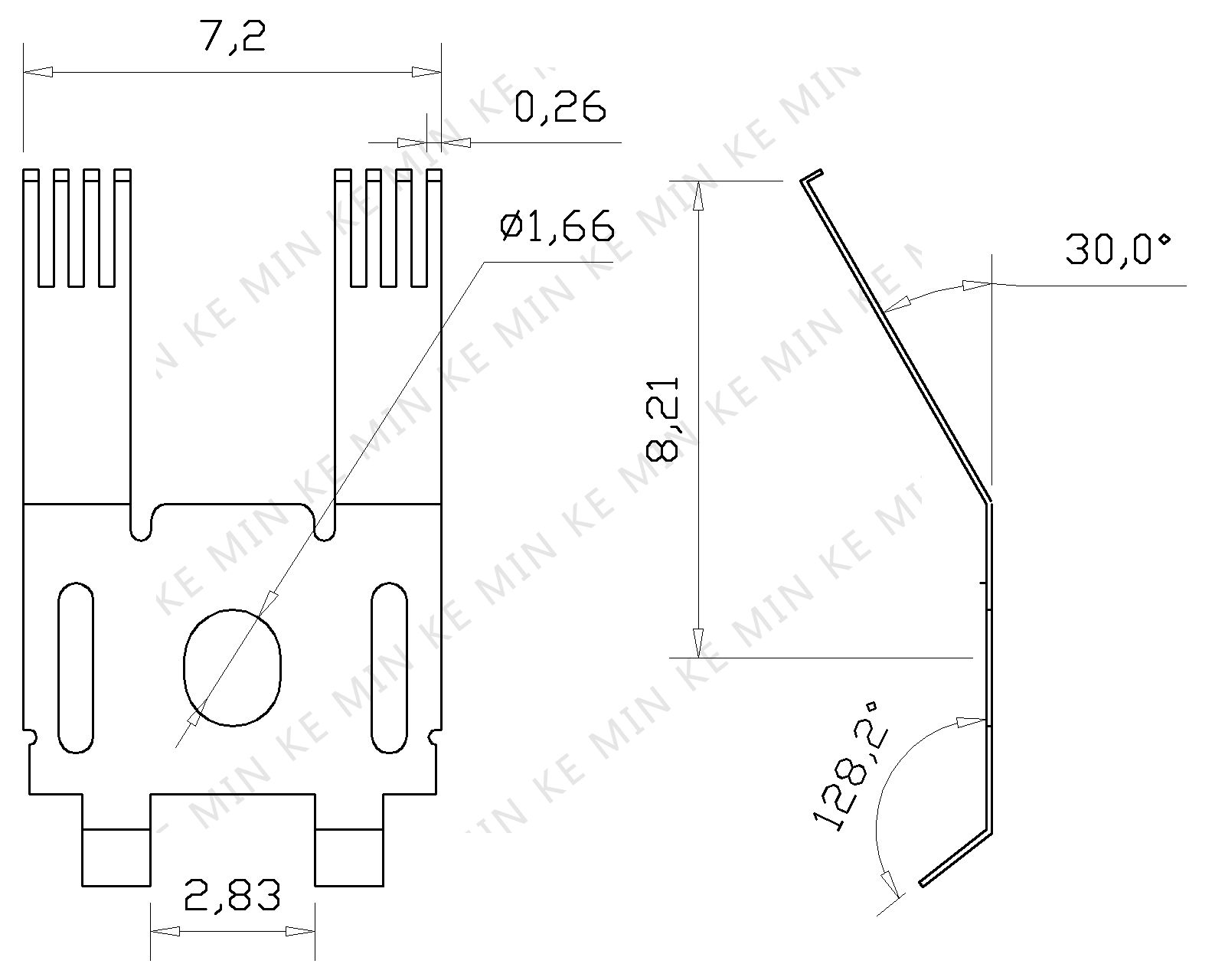 1.基础材料:三元合金1/2 H 2.厚度 :0.08 MM 3.硬度 :HV 330±30 4.同方向每根导线高度差异:0.05 MM 5.工作压力 :40-60g 6.公差值:尺寸±0.1 角度±1