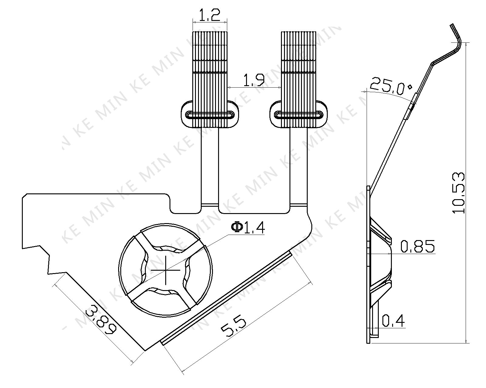 1.基础材料:C172001/2 H 厚度:0.1 MM 2.硬度:HV 330±30 3.焊接最小强度: 30 N 4.焊接强度最小承载:980 mN 5.同方向每根导线高度差异:0.15 MM 6.工作压力:170mN 7.寿命:≥400万次