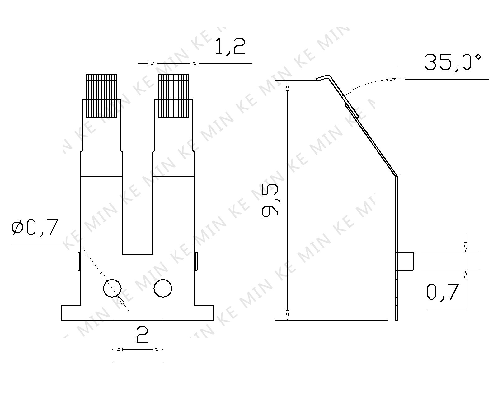1.基础材料:C17201/2 H 2 .厚度:0.07 MM 3.硬度:HV 330±30 4.所有未指定半径:R 0.2 5.焊接最小强度 : 30 N 6.工作压力:170mN 7.寿命;≥400万次