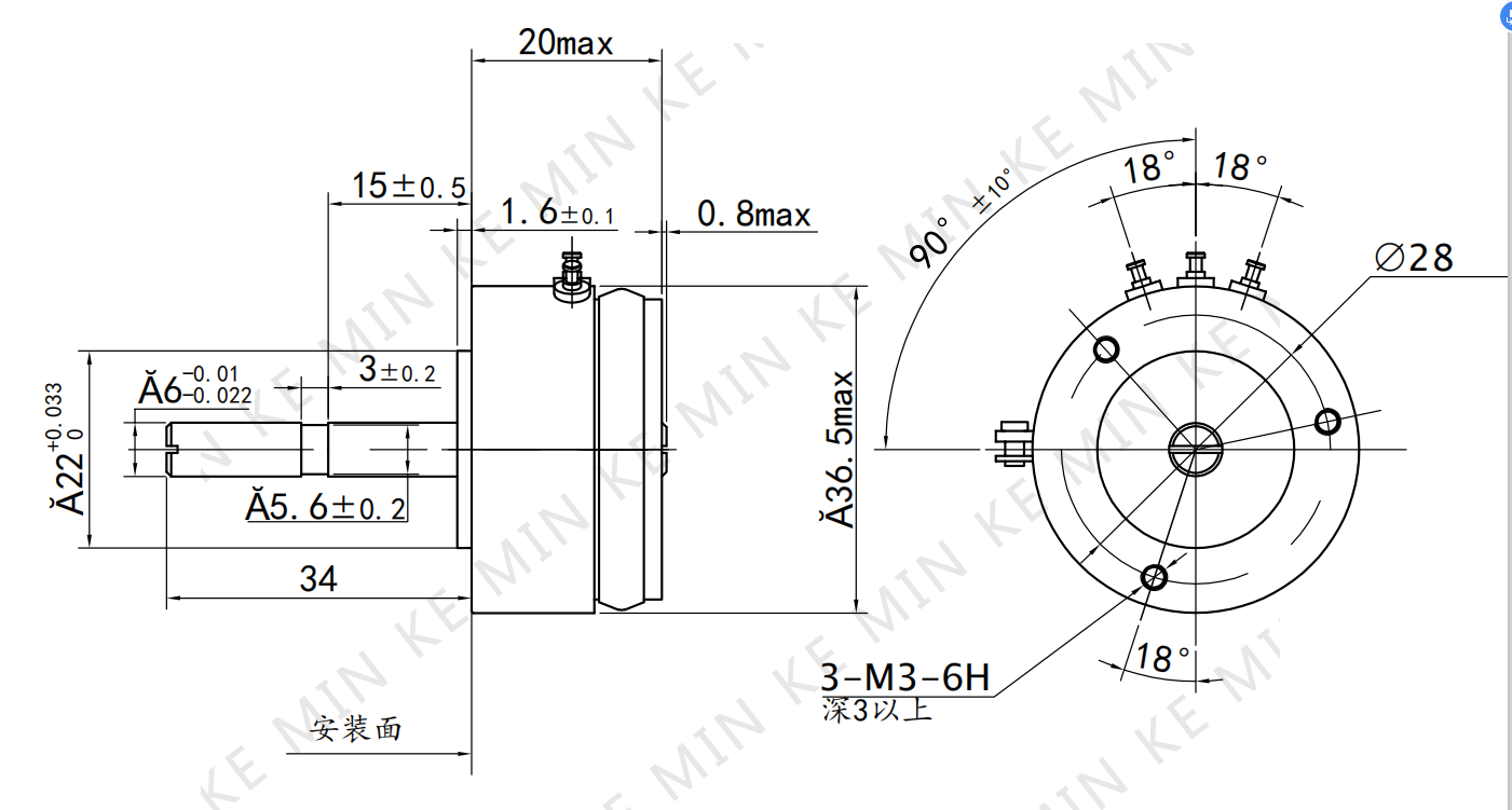 标称阻值 (kΩ)1、2、3、5 启动力矩 (mN.m)≤ 1mN.m